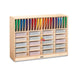 Crafted from rubberwood and pine wood, this wooden shelf features three levels of drawers with built-in dividers for organized and accessible storage. Ideal for Montessori environments, nurseries, or classrooms Features: